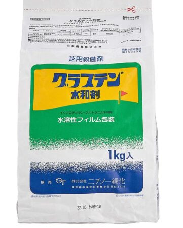 芝生の病気に対する防除は3種類の総合的に効果のある薬(グラステン水和剤、トップグラス、ユニゾン水和剤)を使用できます。